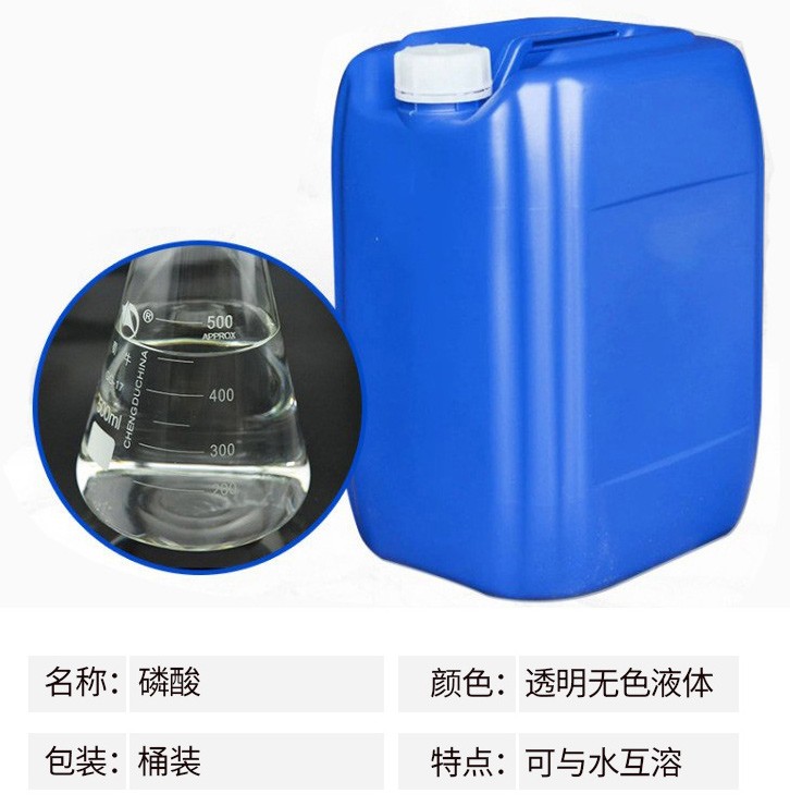熔點42.35℃,比重1.70,高沸點酸,可與水以任意比互溶,沸點213℃時(失去1/2水),則生成焦磷酸。加熱至300℃時變成偏磷酸。相對密Chemicalbook度181.834。易溶于水,溶于乙醇。磷酸是一種常見的無機(jī)酸,是中強(qiáng)酸。其酸性較硫酸、鹽酸和硝酸等強(qiáng)酸弱,但較醋酸、硼酸、碳酸等弱酸強(qiáng)。磷酸與碳酸鈉反應(yīng)時在不同的pH下,可生成不同的酸式鹽。能刺激皮膚引起發(fā)炎,破壞肌體組織。濃磷酸在瓷器中加熱時有侵蝕作用。有吸濕性,密封保存。磷酸主要應(yīng)用領(lǐng)域如下:金屬表面鋼管磷化處理,配制電解拋光液和化學(xué)拋光液;鋁制品的拋光;制造各種磷酸鹽、飼料級磷酸氫鈣、酸式磷酸錳、焦磷酸鉀;醫(yī)藥工業(yè)用于制造甘油磷酸鈉、磷酸鐵,制造青霉素時調(diào)節(jié)酸堿度;用于制造磷酸鋅作為牙科補牙時粘合劑;塑料用于酚醛樹脂縮合的催化劑Chemicalbook;染料及中間體生產(chǎn)用的干燥劑;印刷用于配制揩去膠印彩印版上污點的清洗劑;火柴用于浸漬火柴梗,能使燃燒過的火柴梗不成灰而成炭狀,使用時較為安全;冶金用于生產(chǎn)耐火泥,提高煉鋼爐壽命;橡膠用于漿料的凝固劑及生產(chǎn)無機(jī)粘結(jié)劑的原料;涂料用于金屬防銹漆;食品工業(yè)用作酸性調(diào)味劑。